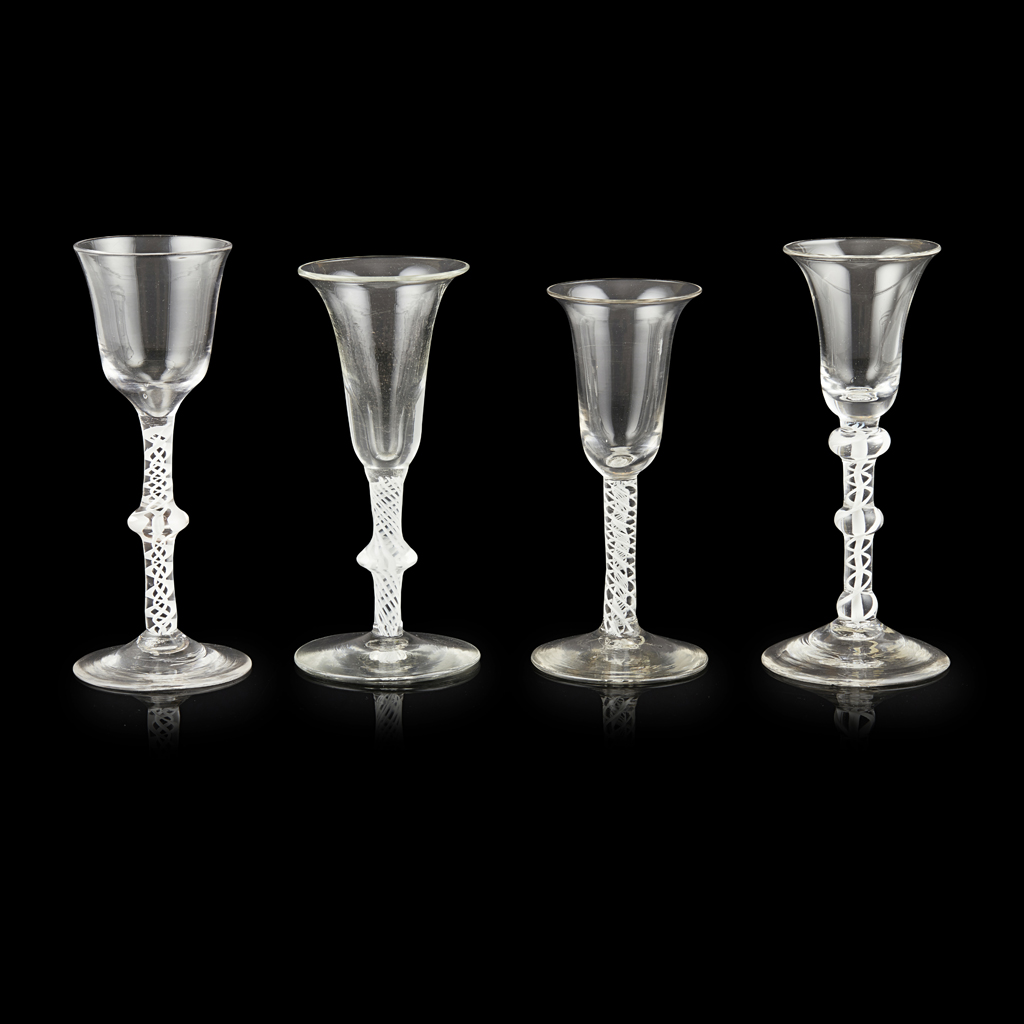 FOUR GEORGIAN OPAQUE TWIST STEM WINE GLASSES