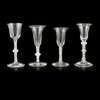 comprising three trumpet-bowled glasses, one with a single knopped stem, and another with a double knopped stem, largest 16.5cm high; and a glass with an ogee pointed bowl, also on a single knopped stem, 16.5cm high (4)