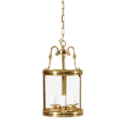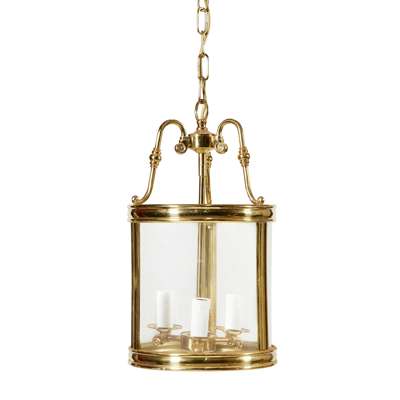 each of cylindrical form with three glass panels and a central three light fixture