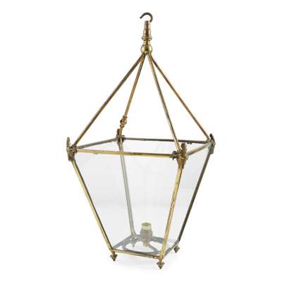 VICTORIAN GILT BRASS AND GLASS HALL LANTERN, IN THE CHIPPENDALE STYLE