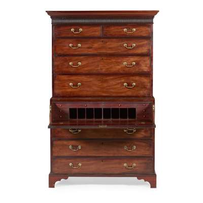 GEORGE III MAHOGANY SECRETAIRE CHEST-ON-CHEST