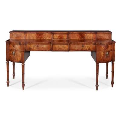 REGENCY MAHOGANY AND EBONISED STAGEBACK SIDEBOARD
