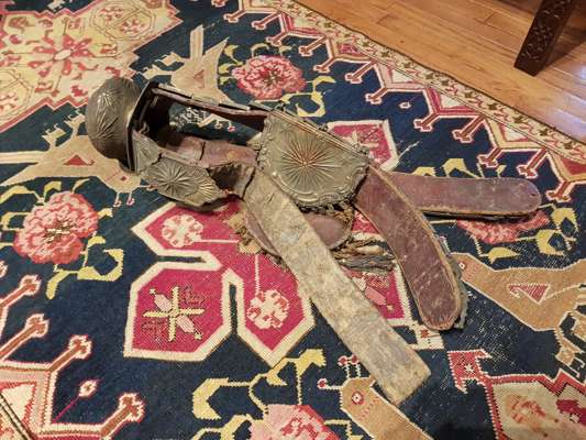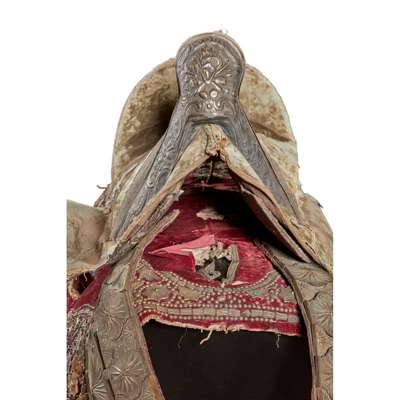 OTTOMAN SADDLE, RED VELVET SADDLE-CLOTH, AND TACKLE