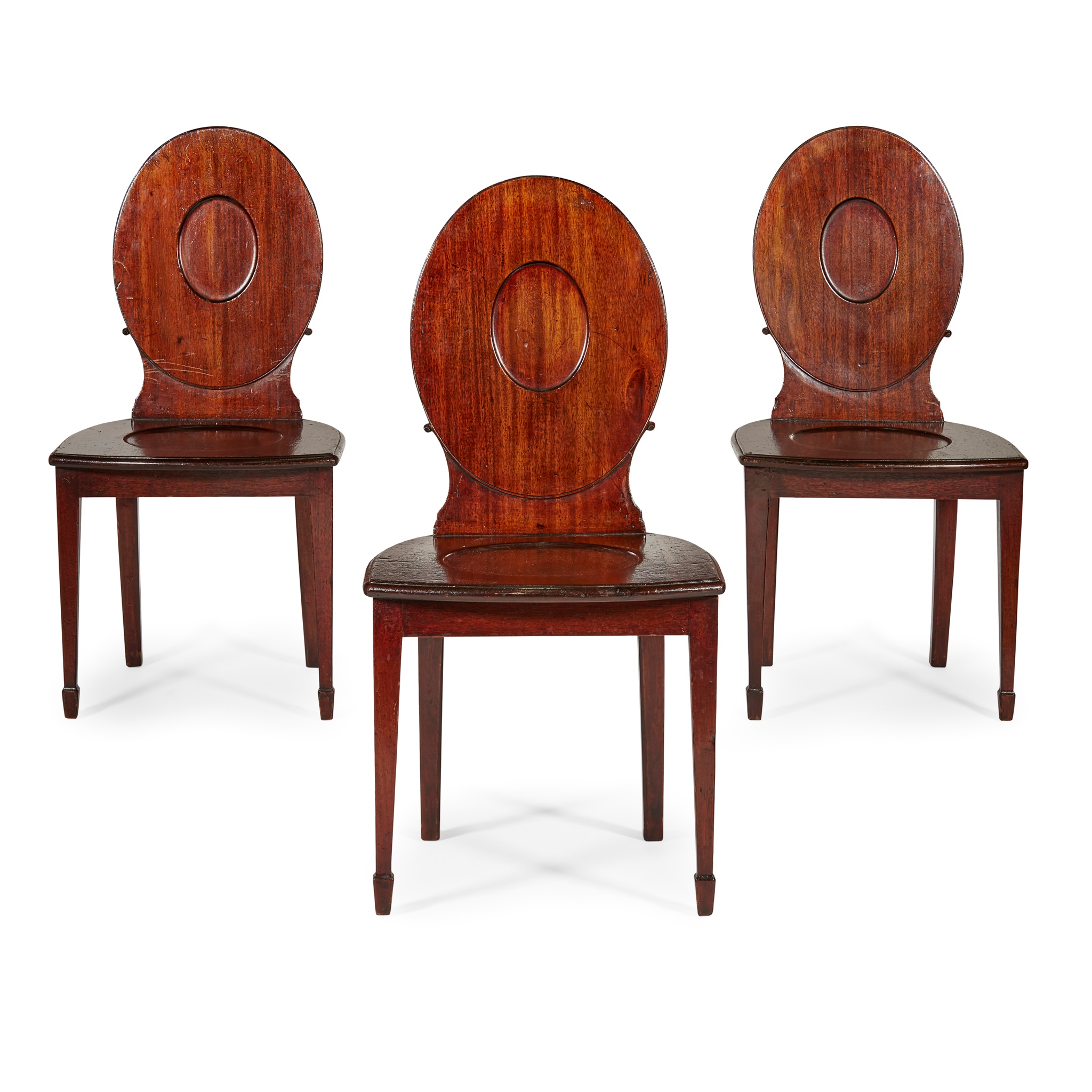 SET OF THREE GEORGE III MAHOGANY HALL CHAIRS