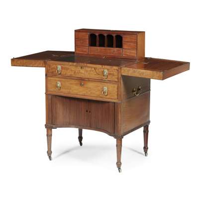 LATE GEORGE III MAHOGANY HARLEQUIN METAMORPHIC WRITING AND DRESSING TABLE