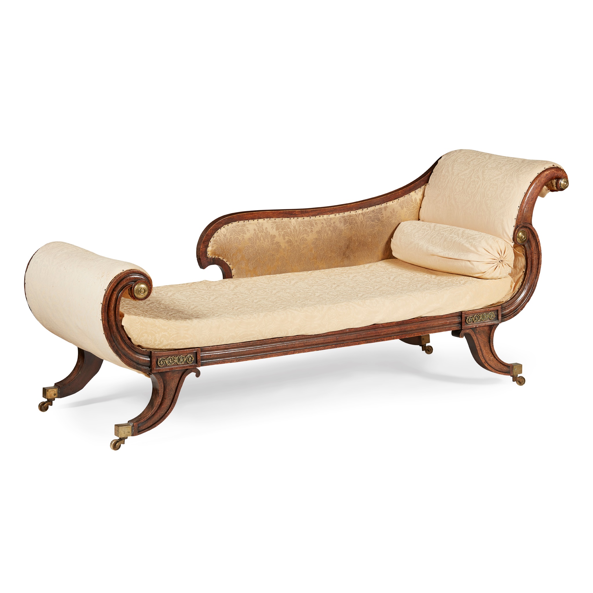 REGENCY GRAIN PAINTED AND BRASS MOUNTED CHAISE LONGUE