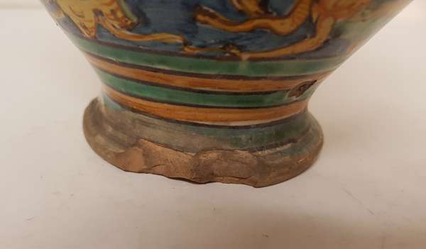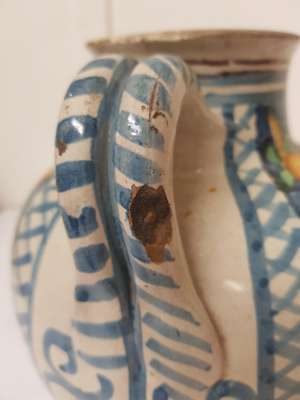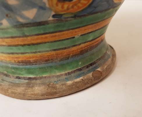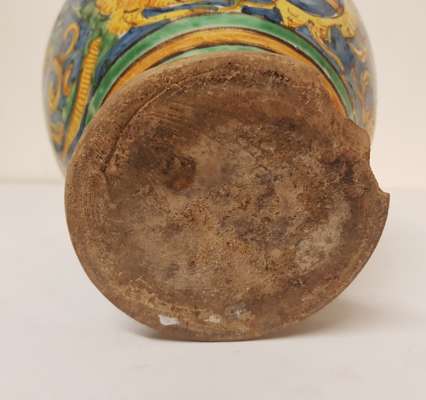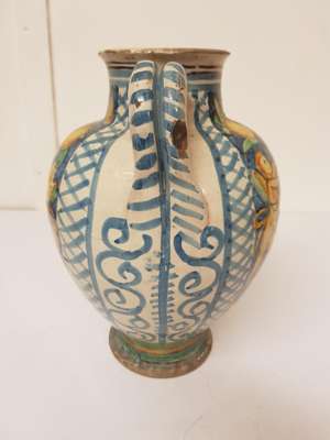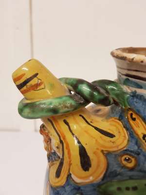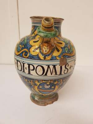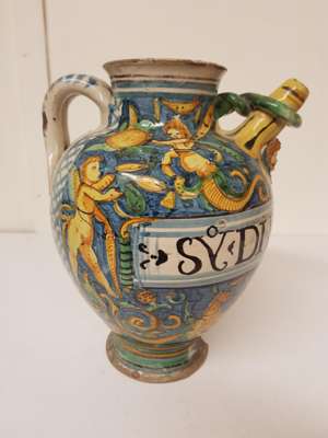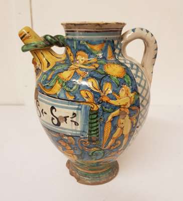 ITALIAN MAIOLICA HANDLED SPOUTED DRUG JAR