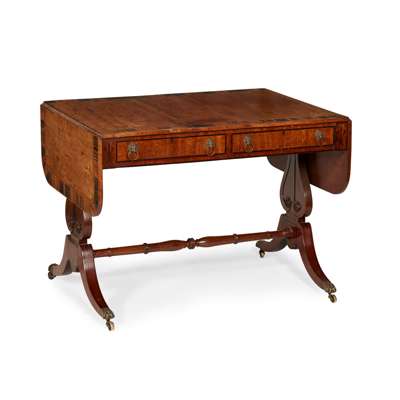REGENCY MAHOGANY AND CALAMANDER SOFA TABLE