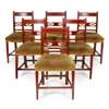 Armchair 57cm wide, 86cm high, 46cm deep; sidechairs 51cm wide, 86cm high, 45cm deep