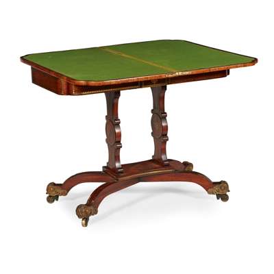 REGENCY ROSEWOOD, COROMANDEL AND BRASS INLAID CARD TABLE Y