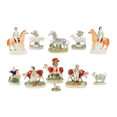 ELEVEN STAFFORDSHIRE FIGURES OF ANIMALS
