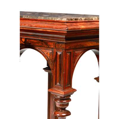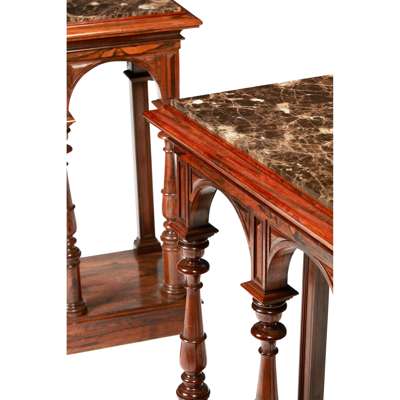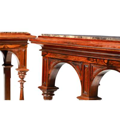 FINE PAIR OF REGENCY ROSEWOOD MARBLE TOP CONSOLE TABLES Y