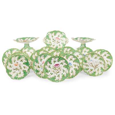 ENGLISH PAINTED PORCELAIN PART DESSERT SERVICE