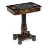 the top with a games board inlaid with mother-of-pearl and painted with flowers, raised above a single drawer and faceted column with quadriform base on bun feet, stamped under the drawer JENNENS & BETTRIDGE/PATENT