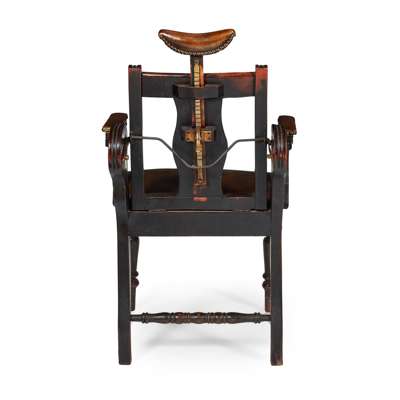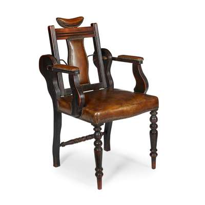 EARLY VICTORIAN STAINED FRUITWOOD AND LEATHER BARBER'S CHAIR