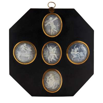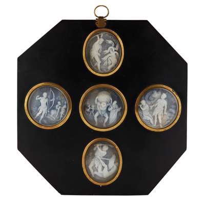 Frames 20.5cm x 20cm; cameos 5cm high/diam. approx.