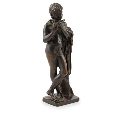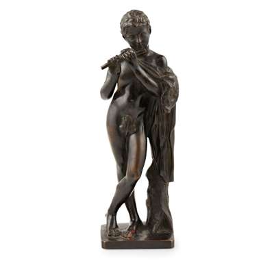 AFTER THE ANTIQUE, ITALIAN OR FRENCH BRONZE FIGURE OF A YOUNG SATYR PLAYING THE FLUTE