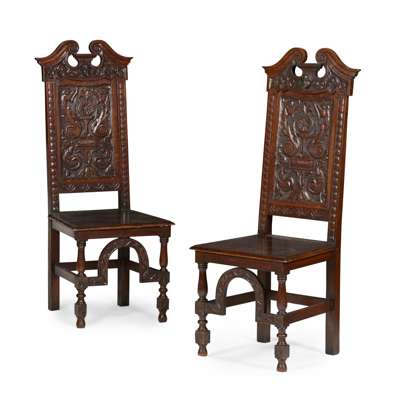 PAIR OF RENAISSANCE REVIVAL OAK HALL CHAIRS