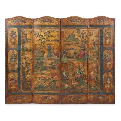 LEATHER PAINTED FOUR-FOLD SCREEN