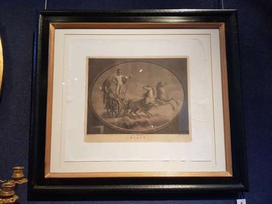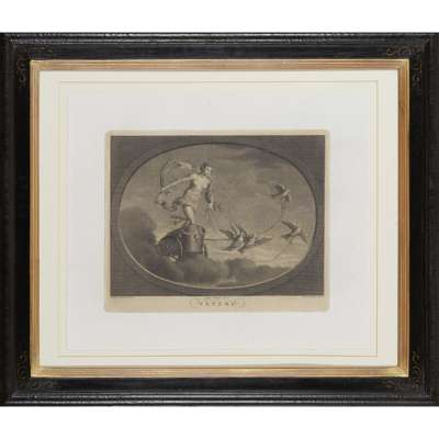 after Stefano Tofanelli, depicting DIANA, VENERE, MARTE and APOLLO, in ebonised and gilt frames