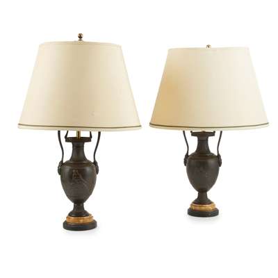 PAIR OF FRENCH BRONZE PATINATED LAMPS