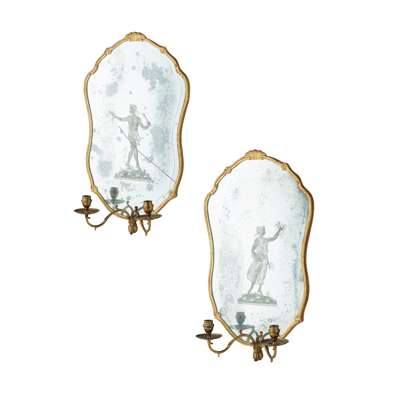 PAIR OF VENETIAN MIRRORED GIRANDOLES