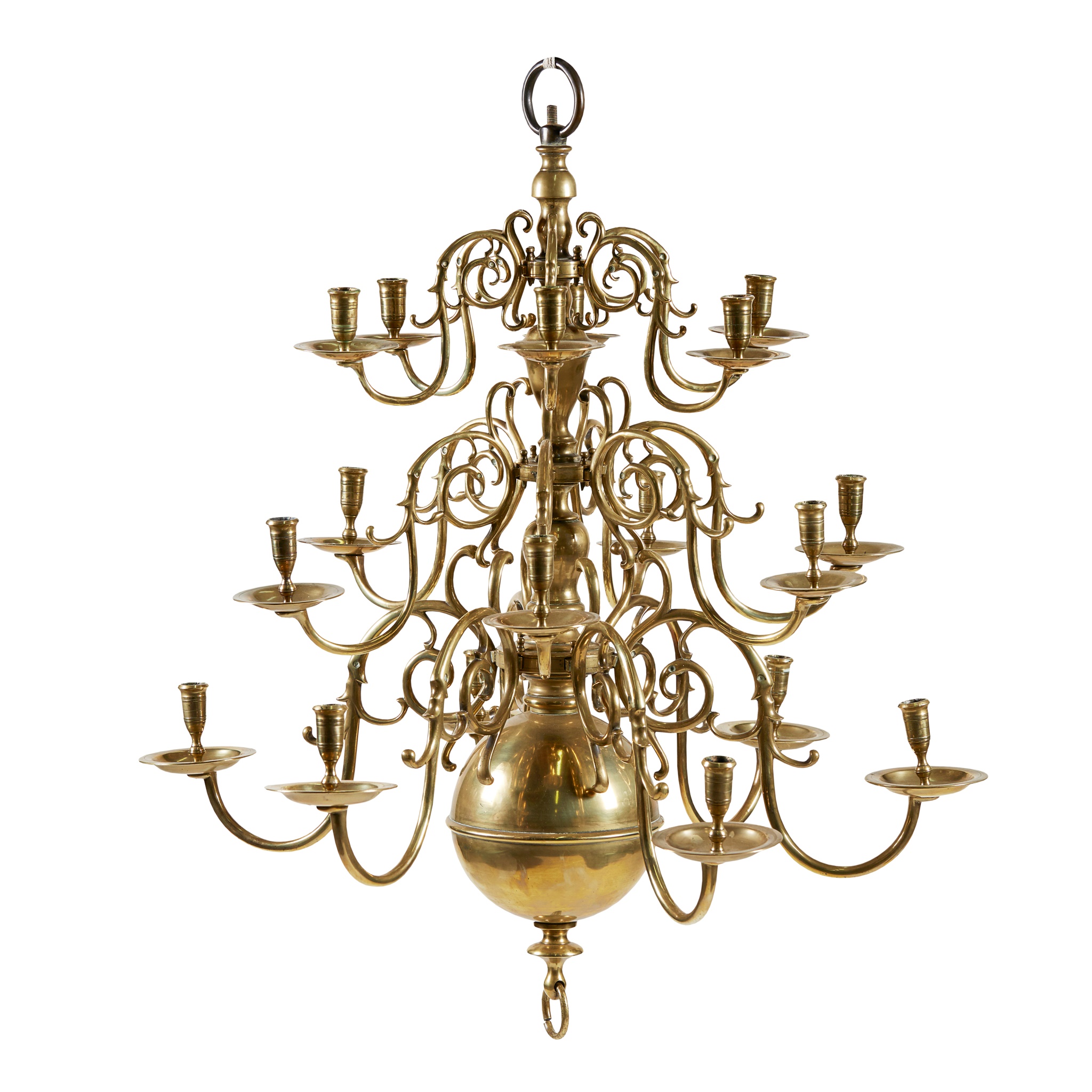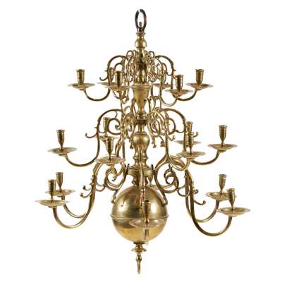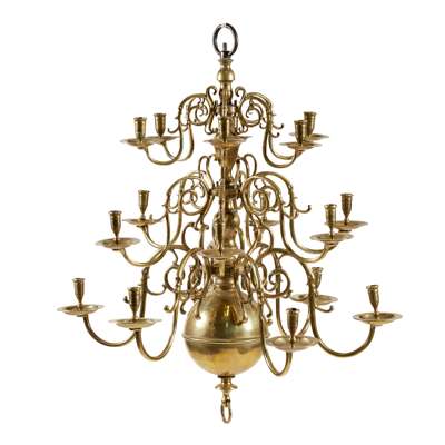 DUTCH BRASS EIGHTEEN BRANCH CHANDELIER