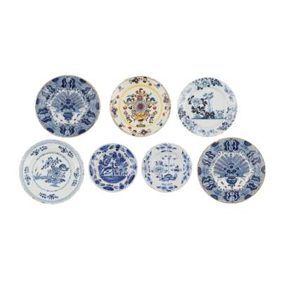 SEVEN ENGLISH AND DUTCH DELFT DISHES