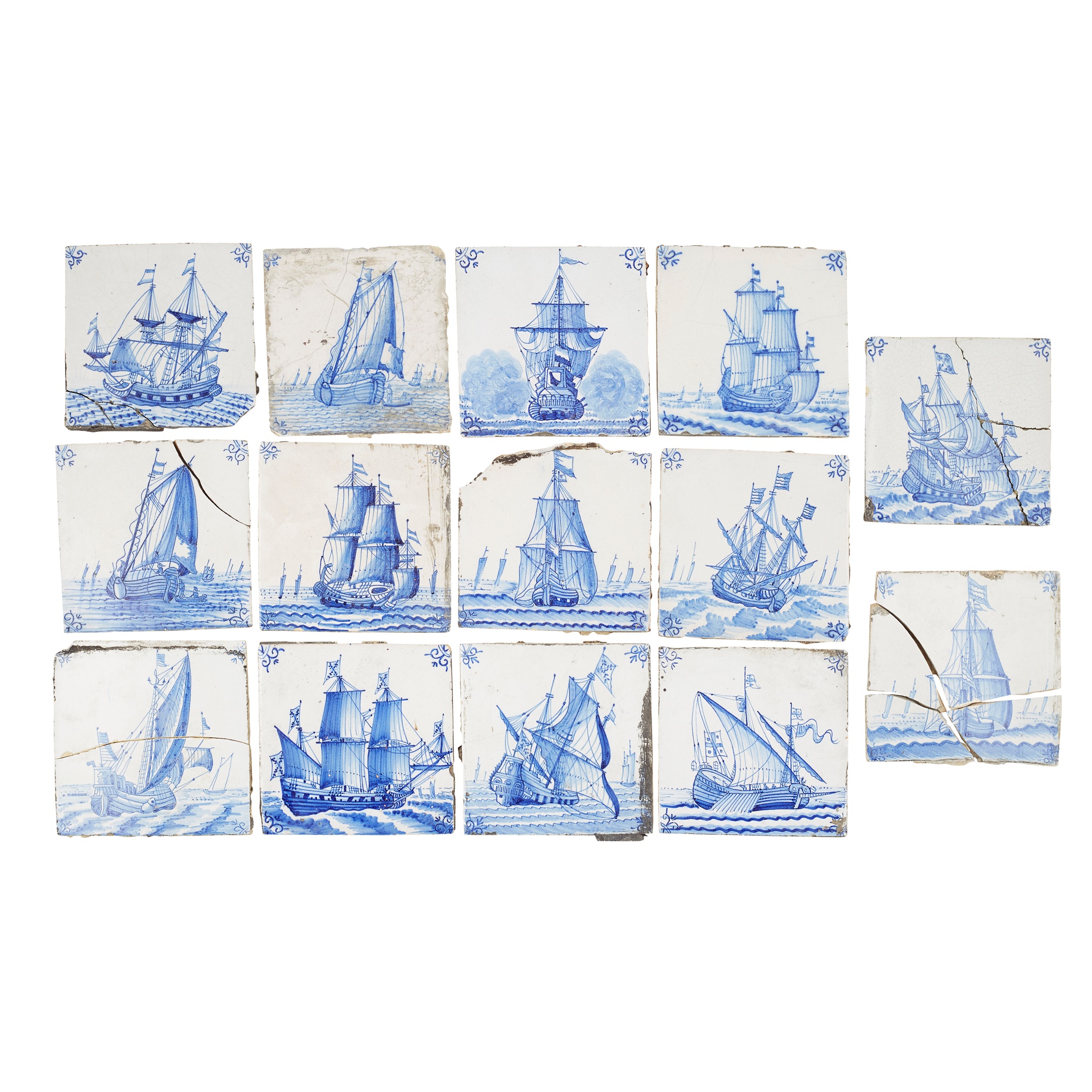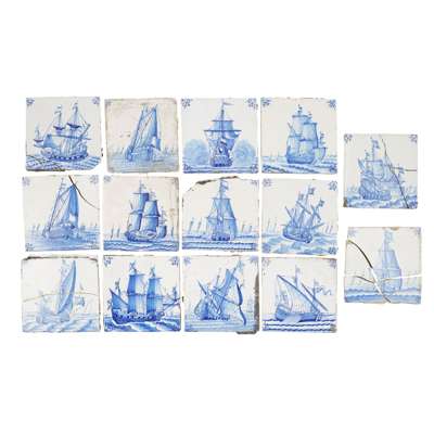 FOURTEEN BLUE ON WHITE DUTCH DELFT TILES