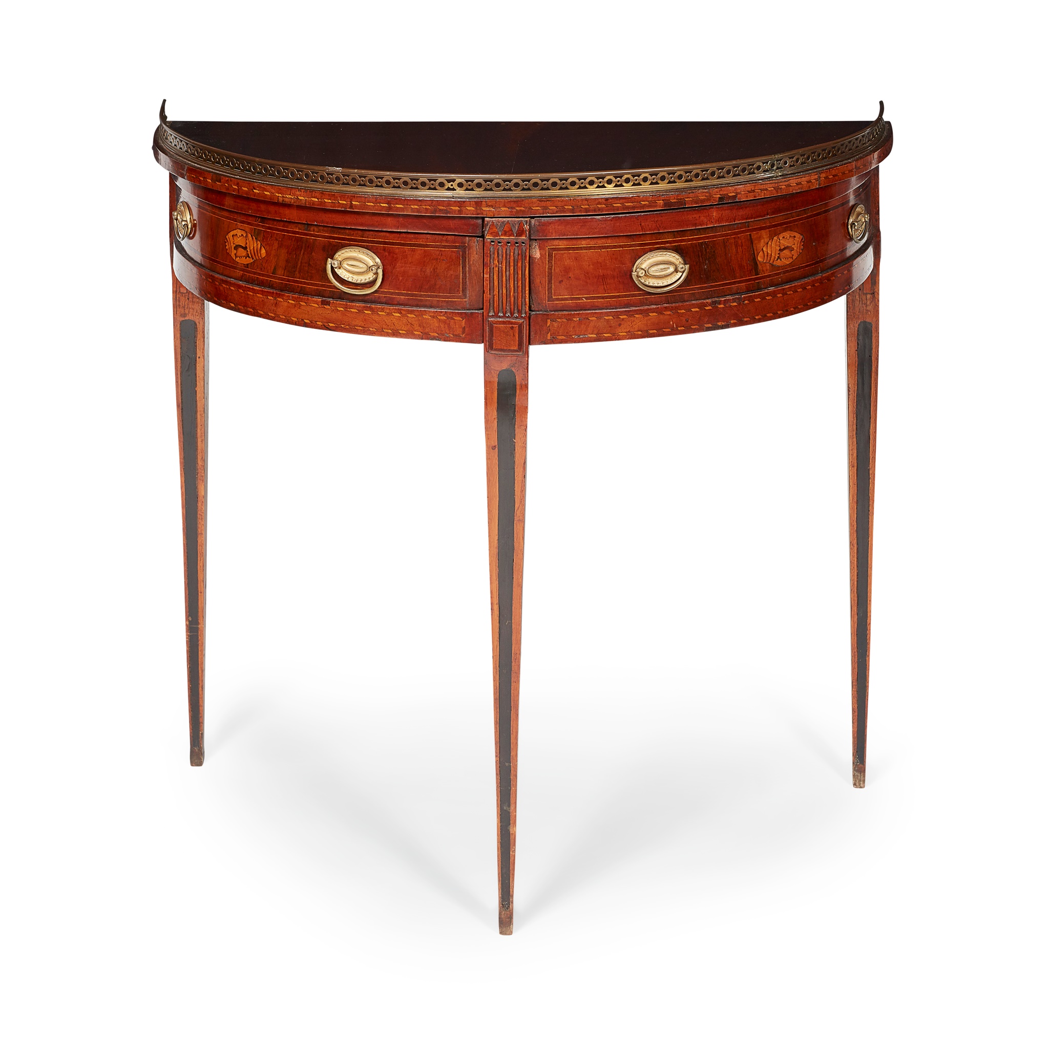 DUTCH WALNUT, EBONISED AND INLAID DEMILUNE TABLE