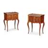 PAIR OF FRENCH ROSEWOOD AND MARQUETRY MARBLE-TOPPED COMMODES Y