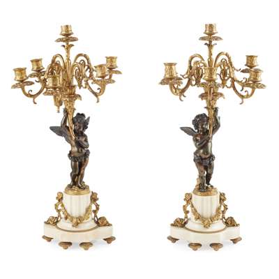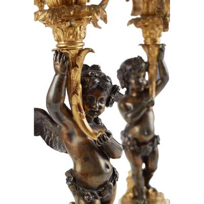PAIR OF FRENCH GILT AND PATINATED BRONZE CANDELABRA