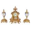 FRENCH GILT METAL AND PORCELAIN THREE-PIECE CLOCK GARNITURE