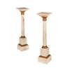 with pivoting square tops above gilt bronze foliate capitals on red-veined white marble columns, raised on stepped plinth bases