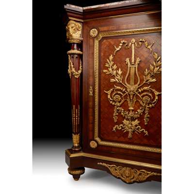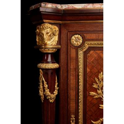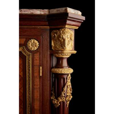 FINE FRENCH ROSEWOOD, KINGWOOD, ORMOLU AND PARQUETRY ENCOIGNURE, BY JEAN-LOUIS BENJAMIN GROS, PARIS Y