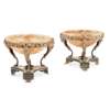 each with a pink onxy bowl in a pierced frame with fruiting vines and cabriole legs headed by satyr masks, on a triform base with a pineapple finial, raised on paw feet