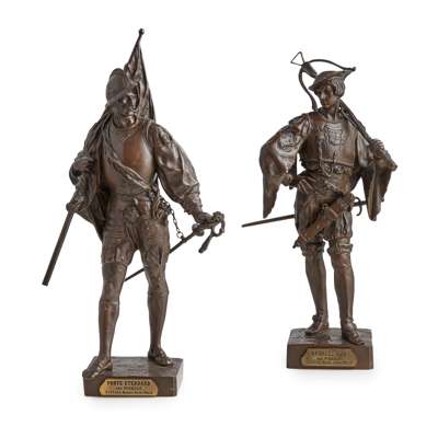 PAIR OF BRONZE FIGURES OF SOLDIERS, 'ARBALETRIER' AND 'PORTE ETENDARD'