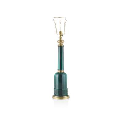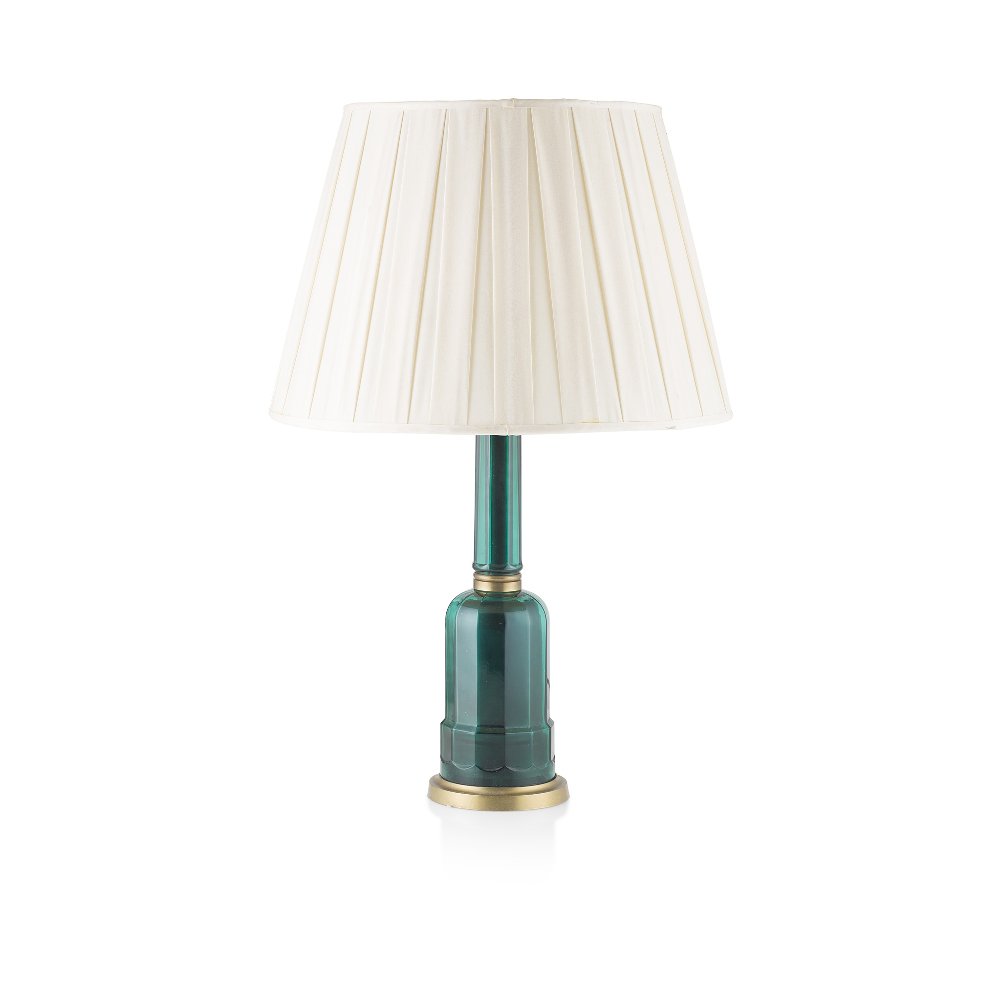 LARGE VICTORIAN GREEN GLASS TABLE LAMP