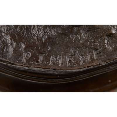 medium brown patina, on naturalistic ground, signed P. J. MENE, on a red marble base