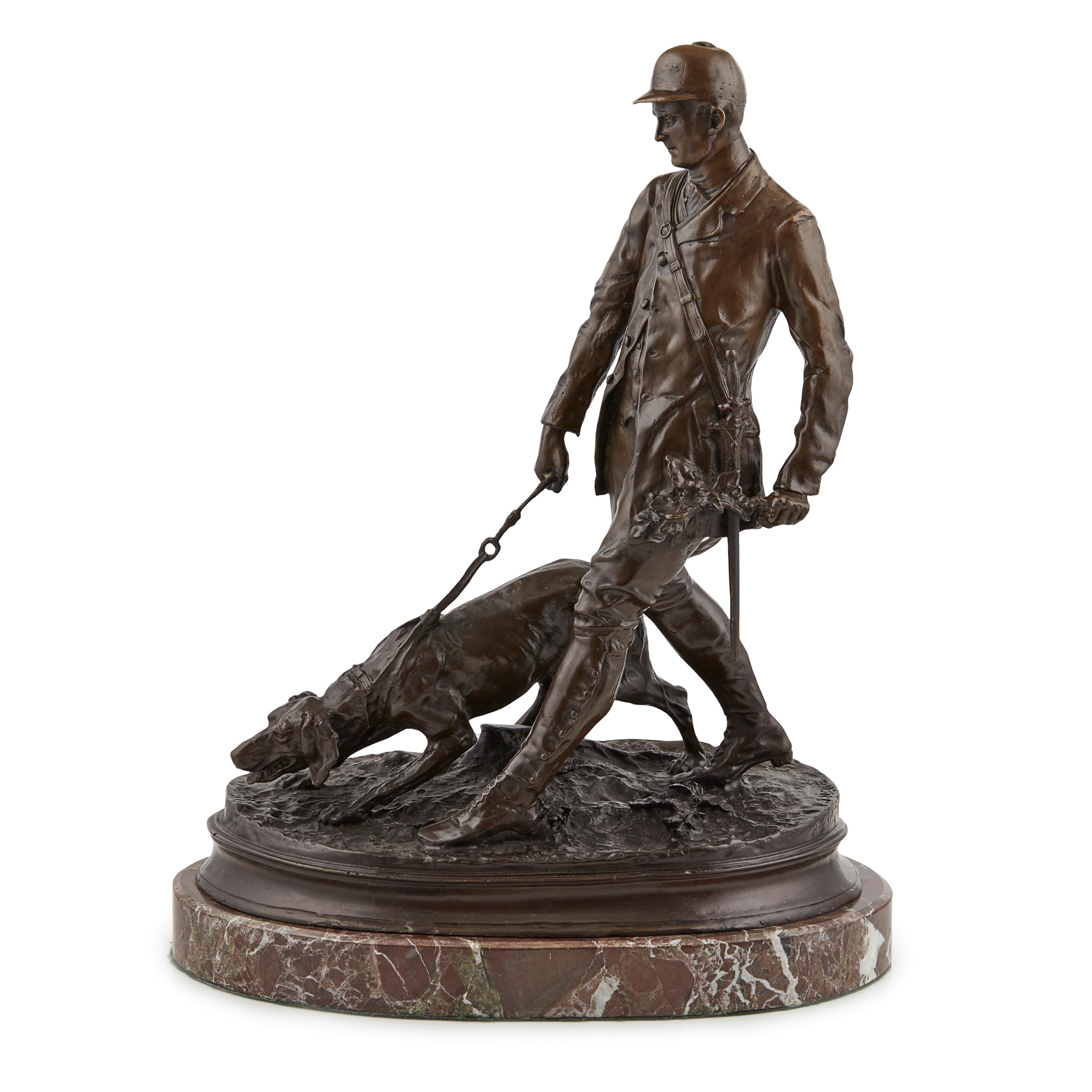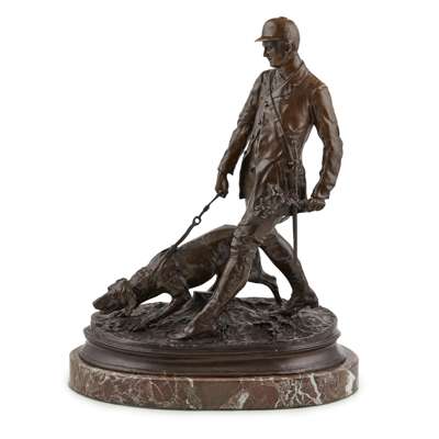 BRONZE FIGURE GROUP OF A HUNTSMAN AND DOG