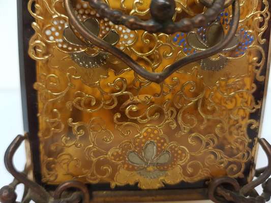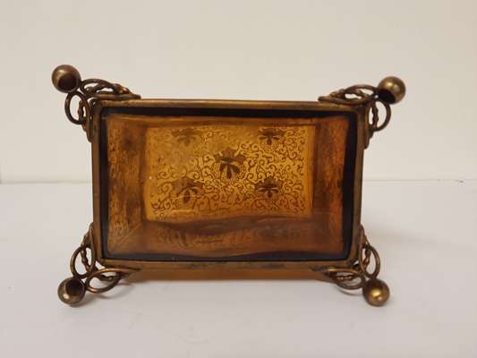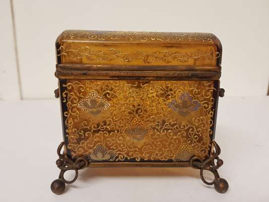 ENAMELLED AMBER GLASS CASKET, PROBABLY MOSER