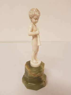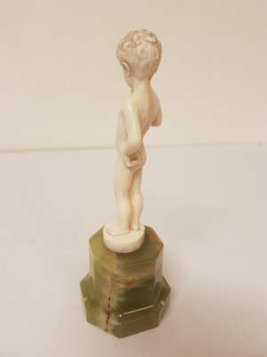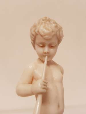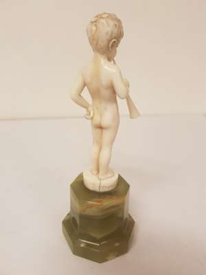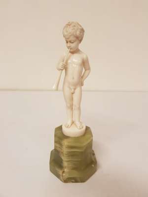 CARVED IVORY FIGURE OF A BOY WITH A HORN, CIRCA 1930S