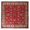 the crimson red field with allover palmette and scrolling vine pattern, within cream palmette and foliate vine border