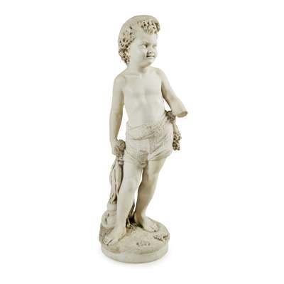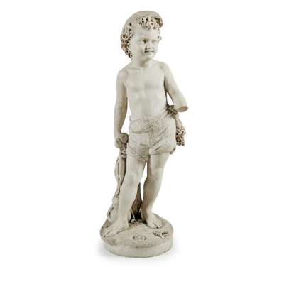 white marble, the standing figure holding a catch of fish, on a circular base signed 'P LAZZERINI FECIT/ 1874[?]