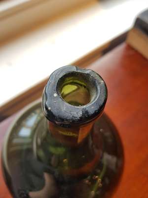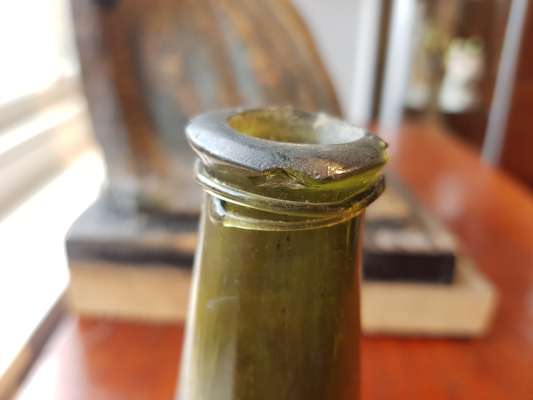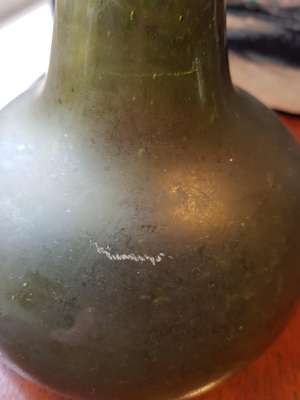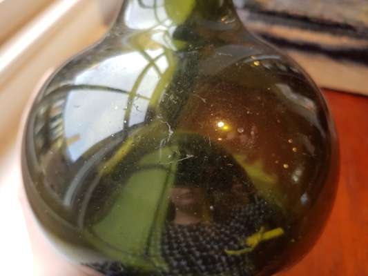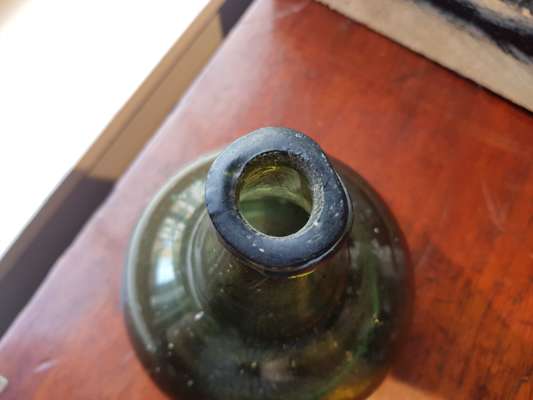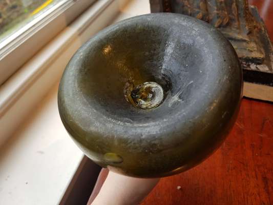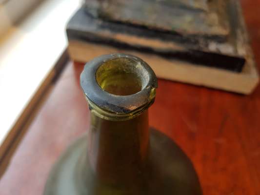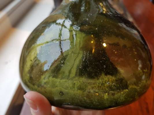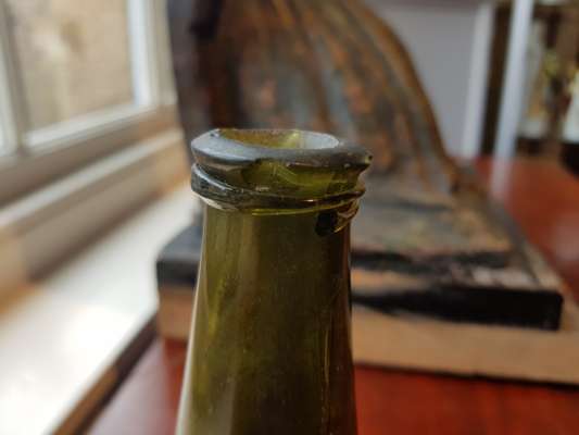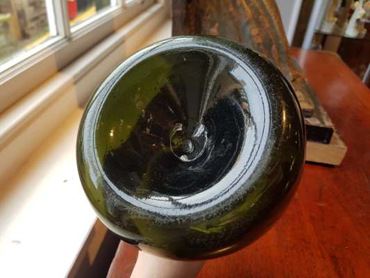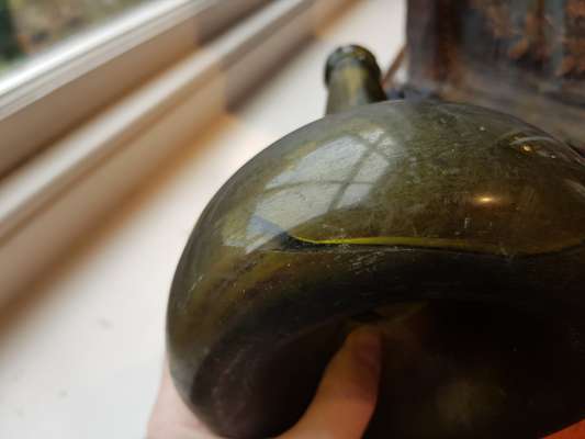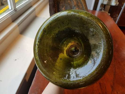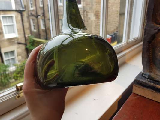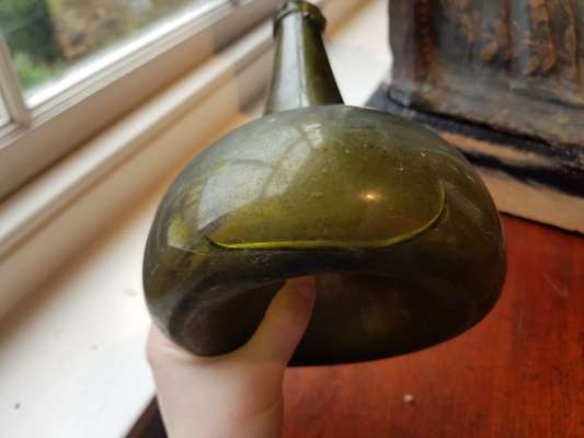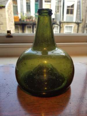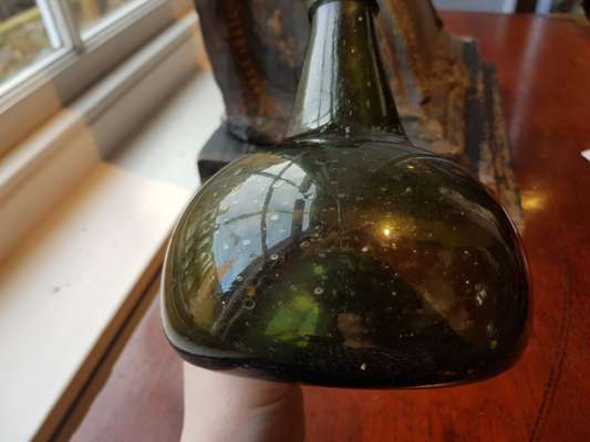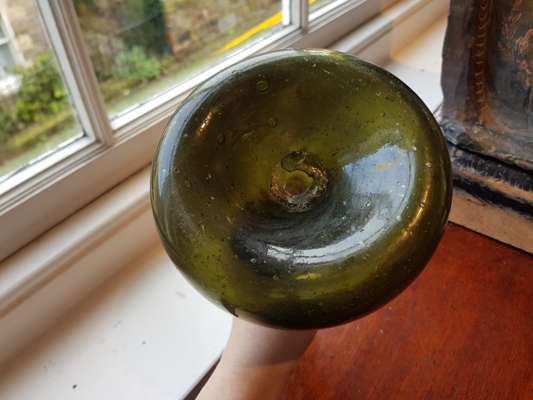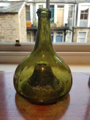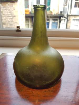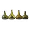 FOUR OLIVE GREEN GLASS 'ONION' BOTTLES