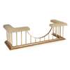 with two L shaped seat pads with the close-nailed upholstery, raised on brass rails and a moulded base