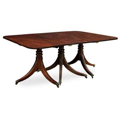 LATE GEORGIAN TRIPLE PEDESTAL MAHOGANY DINING TABLE