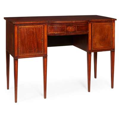 SMALL GEORGE III MAHOGANY, GONCALO ALVES, AND INLAY SIDEBOARD