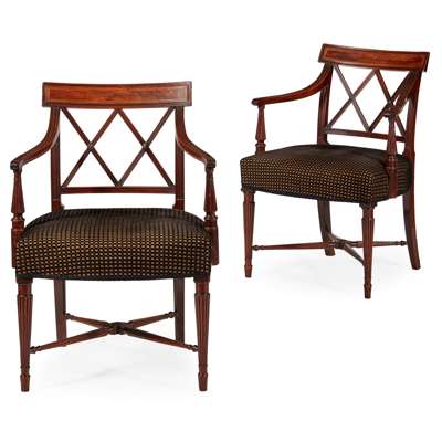 PAIR OF LATE GEORGE III MAHOGANY ARMCHAIRS