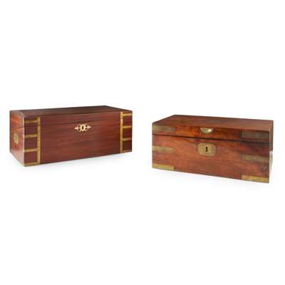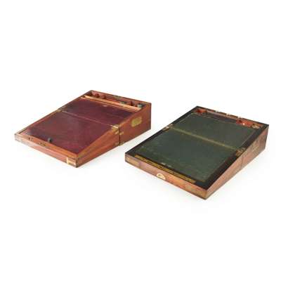 TWO MAHOGANY BRASS BANDED WRITING SLOPES